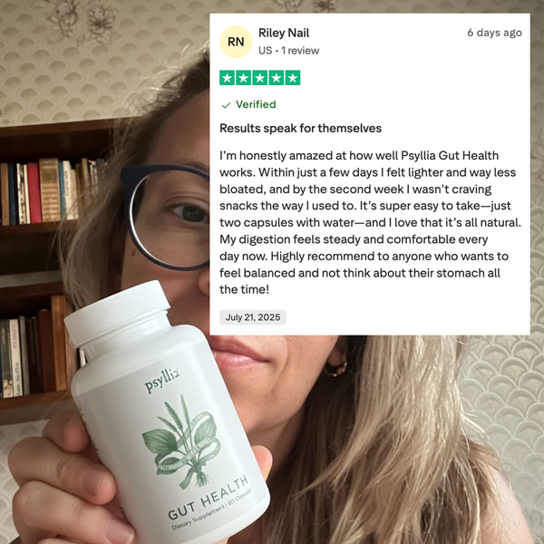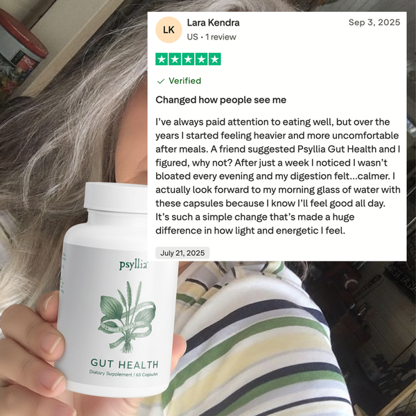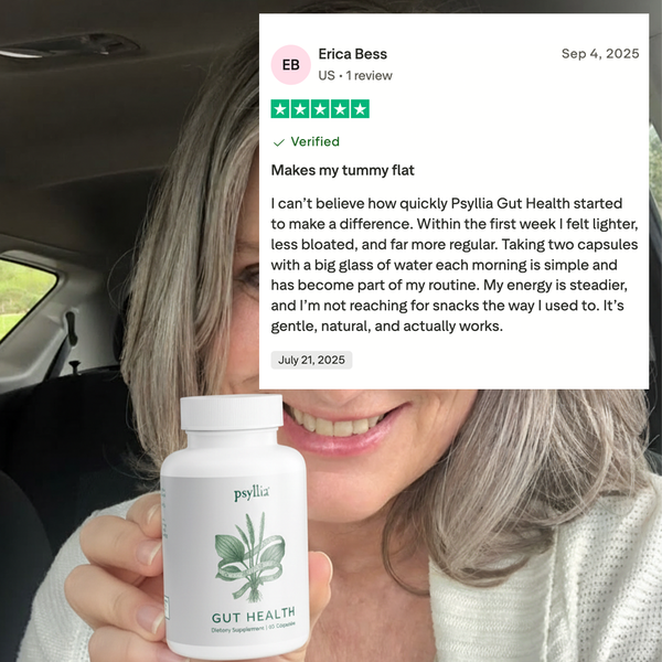 Psyllia® Gut Health™ ist eine tägliche pflanzliche Formel, die Ihnen helfen soll, sich leichter, satter und ausgeglichener zu fühlen.
