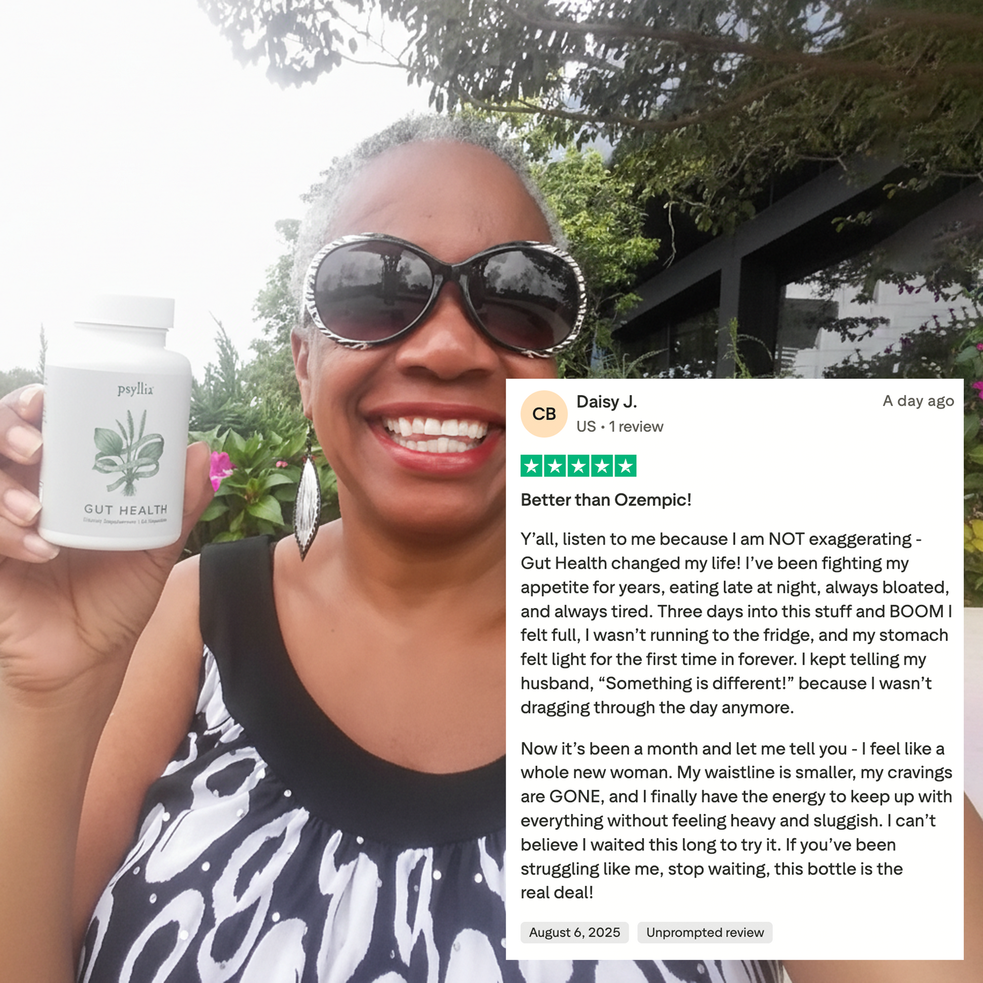 Dank der unkomplizierten Geld-zurück-Garantie können Sie Psyllia® Gut Health™ 60 Tage lang testen, bevor Sie entscheiden, ob es das Richtige für Sie ist .